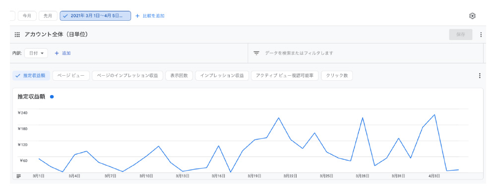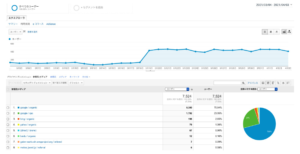 まずは下の画像をご覧ください。 2021年3月中のグーグルアナリティクスデーターです。