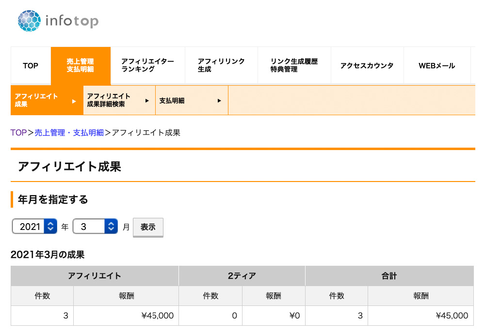 月間で4万5000円。 サイトやブログで紹介している商品が購入されなければアフィリエイト報酬は上がりません。 このことからも自然なアクセスであるということはお分かり頂けると思います。